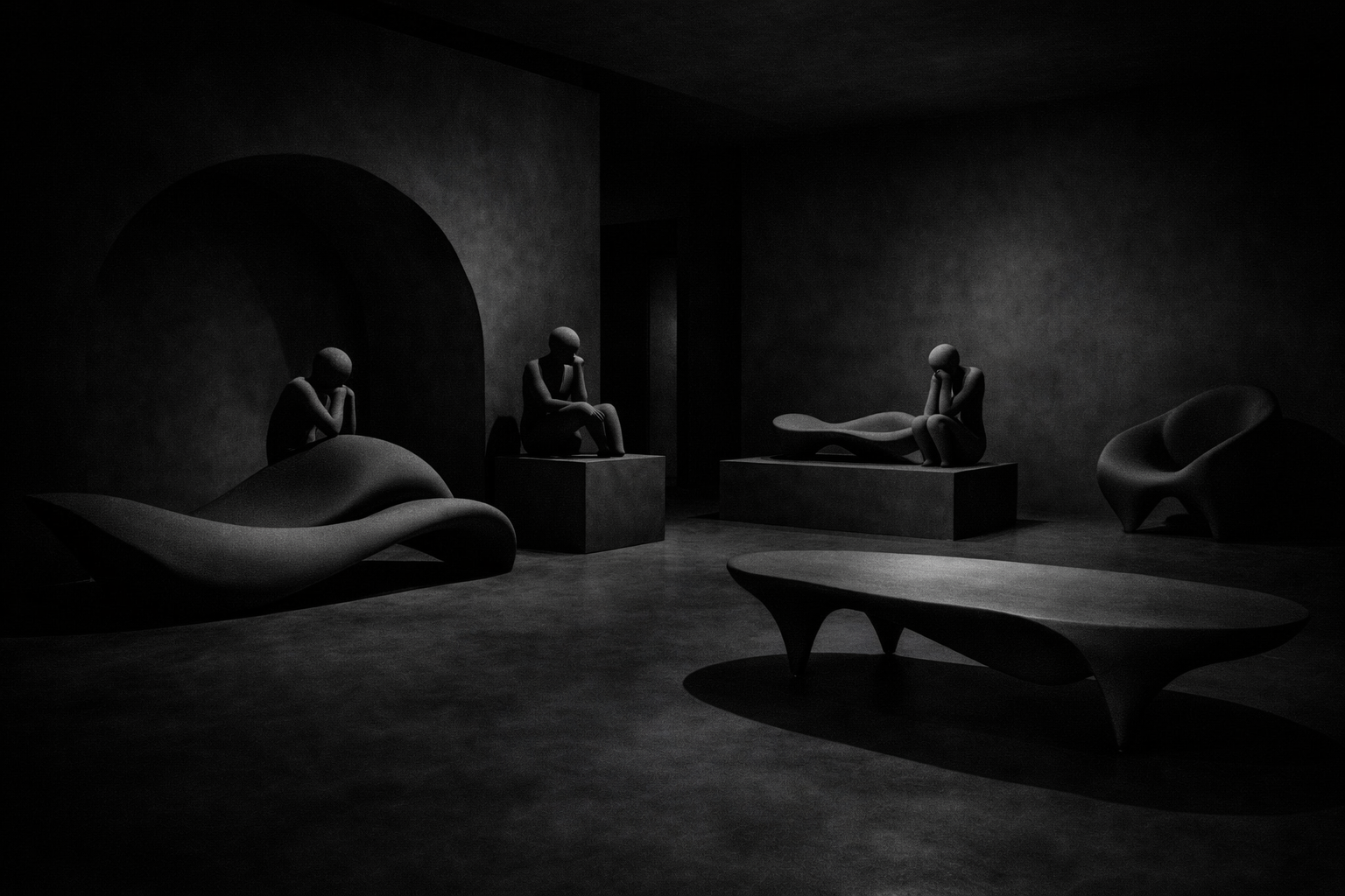 Human Furniture dissolves the line between the living body and designed space. Each piece asks: what remains when function consumes form?
